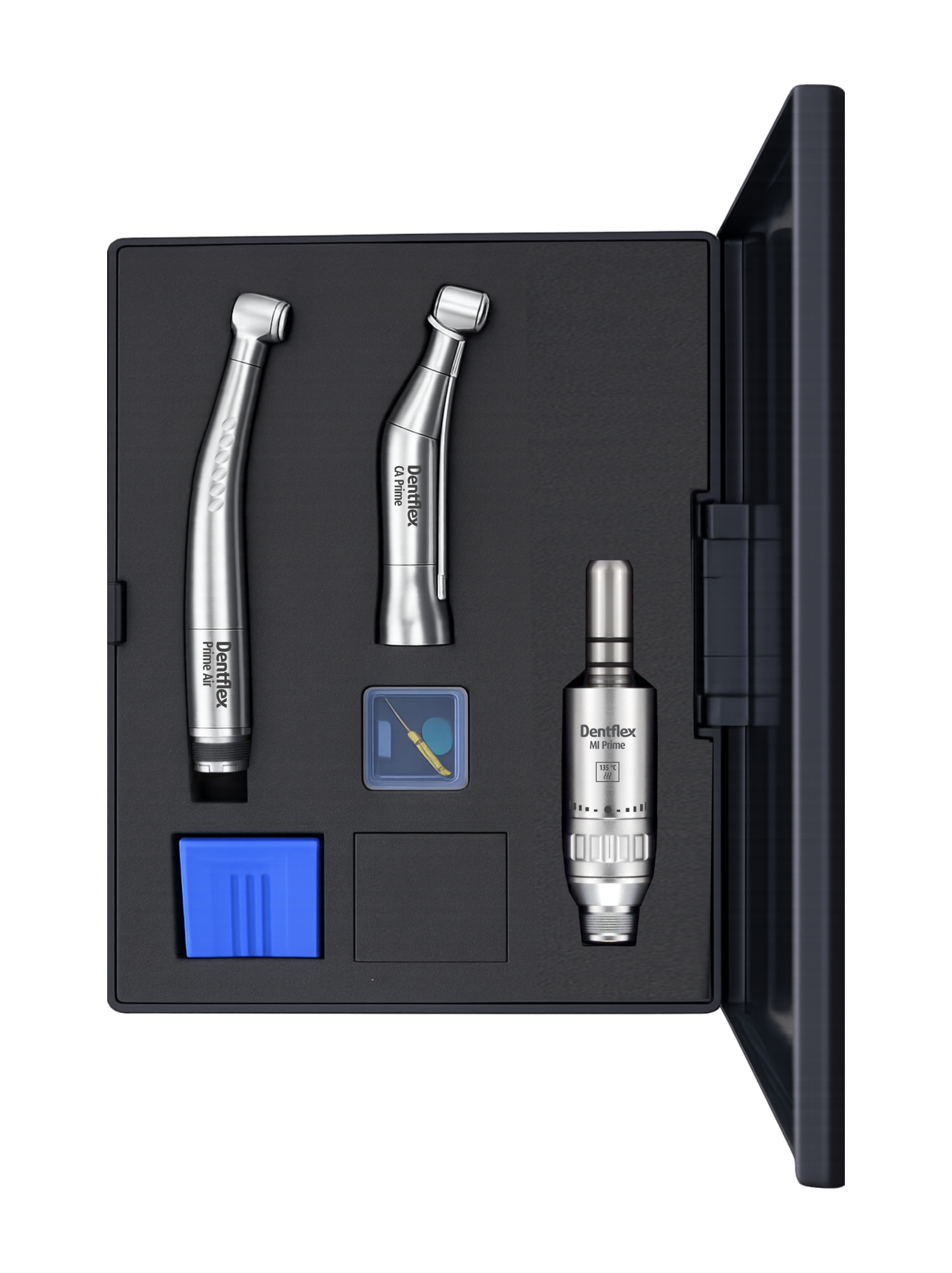 O Kit Acadêmico Intra Prime Air 3P com Refrigeração Interna Dentflex reúne os principais instrumentos para conduzir o aluno de odontologia desde a sala de aula até sua vida profissional.