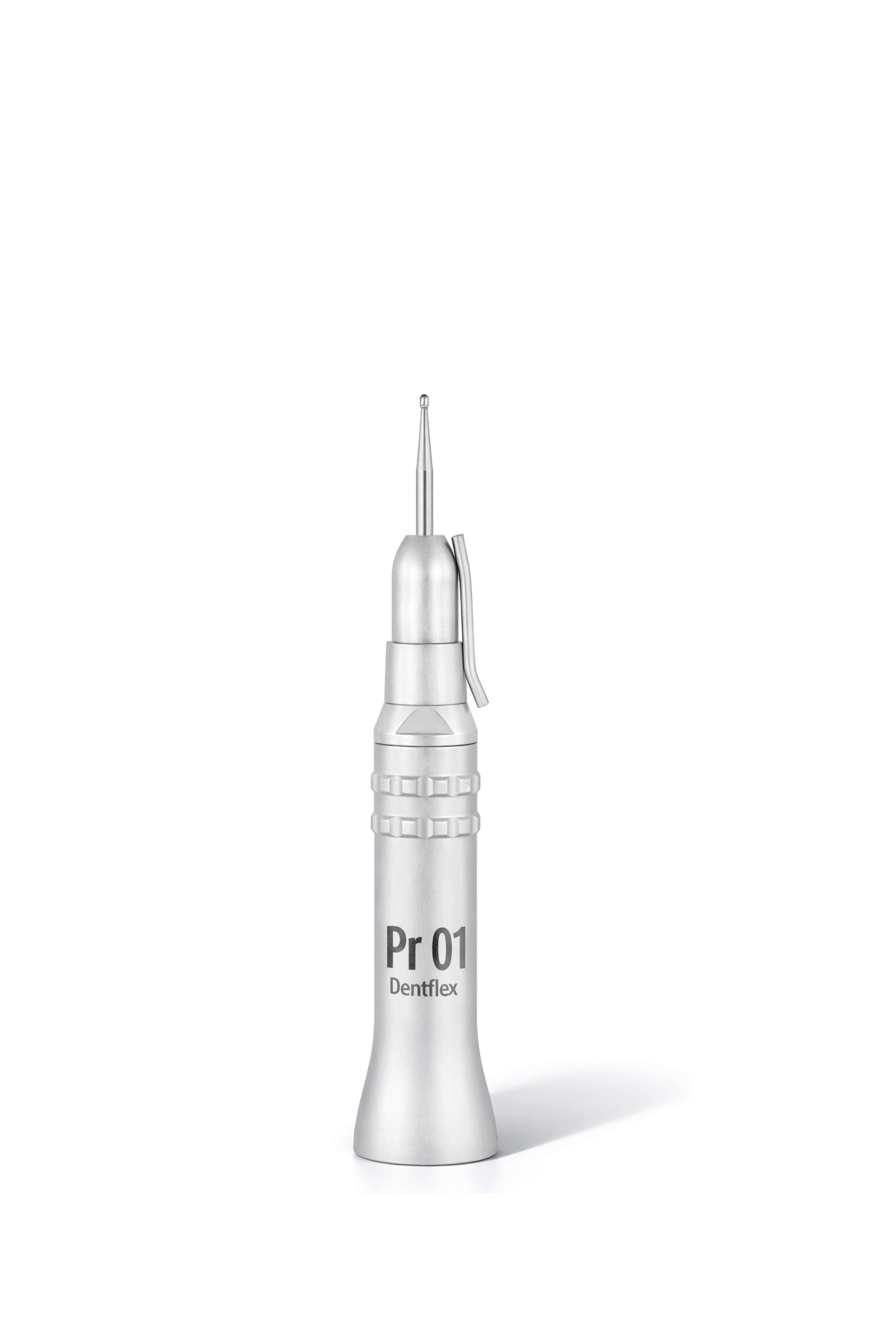 A baixa rotação gira bem mais devagar e é usada para acabamento e polimento. É perfeita para dar forma, remover excessos, ou trabalhar com materiais que exigem mais controle. O contra ângulo deve ser usado quando precisar de precisão, como para fazer o polimento de uma resina, ou uma profilaxia. Um detalhe é que o cano de refrigeração desse contra ângulo é totalmente soldado, um cuidado que faz toda a diferença em precisão, durabilidade e higiene.