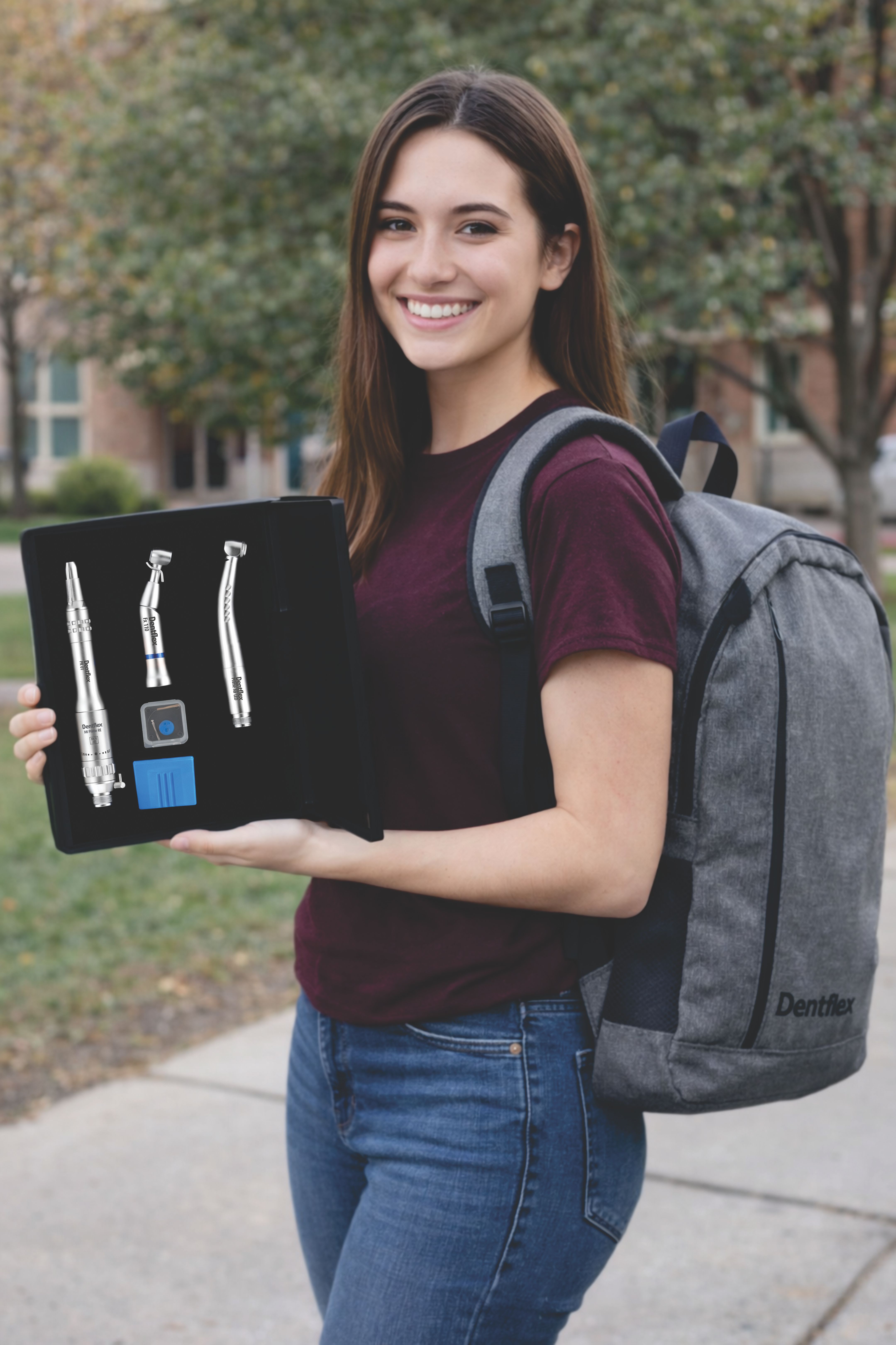 O Kit Acadêmico Dentflex foi desenvolvido para acompanhar o estudante desde os primeiros atendimentos até sua entrada na vida profissional.