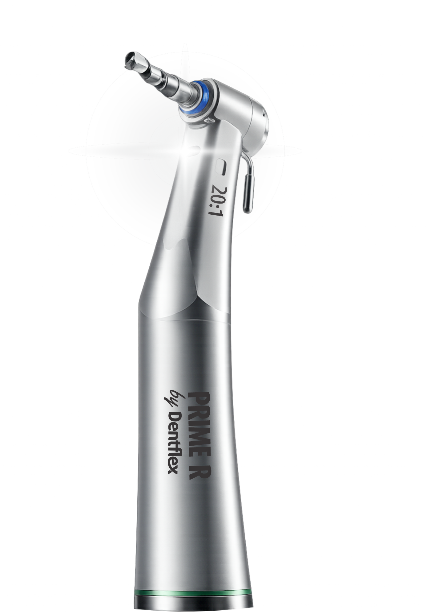 Contra Ângulo Cirúrgico Prime R 20:1 com sistema de iluminação indicado para cirurgias e implantes.
